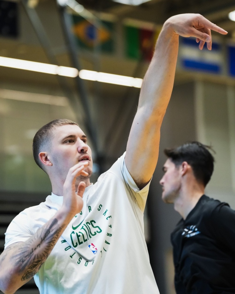 9月12日讯 今天,凯尔特人官方晒出了训练照,球队新援安芬尼-西蒙斯在列。