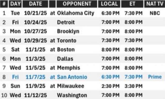 北京时间2025年8月15日,此前NBA公布了25-26赛季的完整赛程,而火箭队的记者Bradeaux列出战了球队新赛季前10场的赛程,并评论道:“没有背靠背,预测一下战绩。”