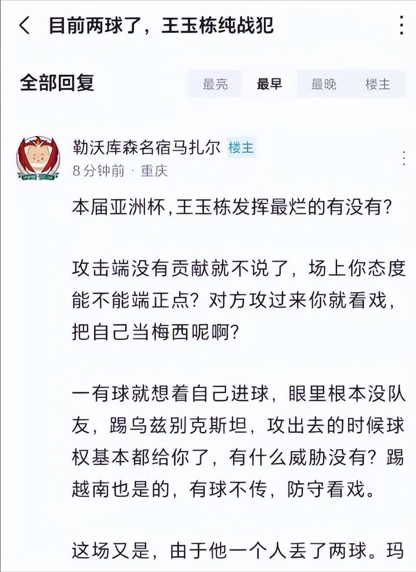 "王钰栋这锅背得冤啊!日本队全场压制,门将李昊都扑了十几次了,咋就盯着他一个停球失误喷?"